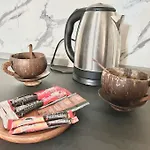 객실에는 오븐, 오븐, 냉장고가 있으며 주방 시설에는 다채널 TV, 다채널 TV, 위성 채널이 있는 평면 TV가 포함되어 있습니다.